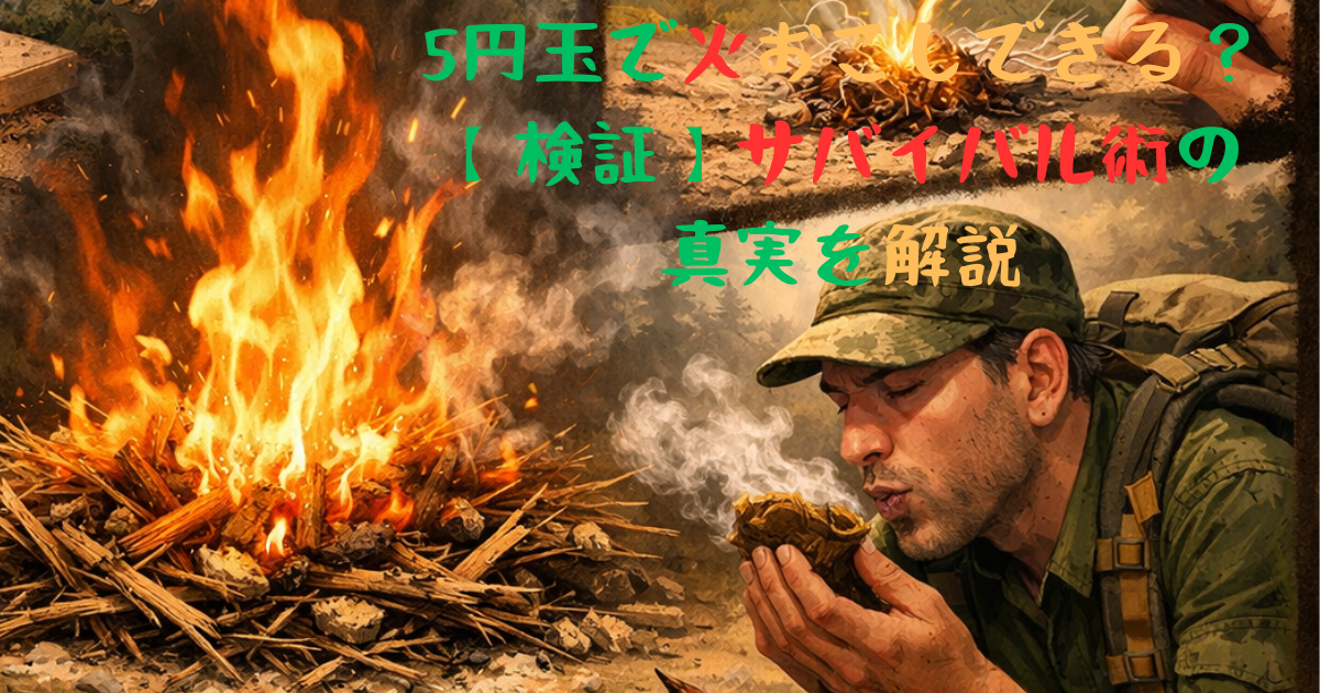 今回は、5円玉火おこしの真実をリサーチして、正直にお伝えします。ネタバレすると…「理論上は可能だけど、実際には超困難」というのが答えです(笑)。