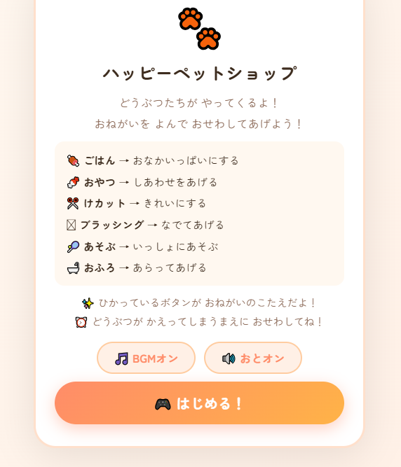 動物お世話シミュレーションゲーム