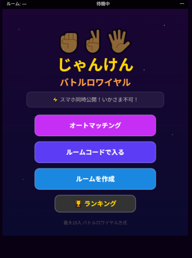 - シンプルなじゃんけんルールだけの、わかりやすいオンラインゲームです。