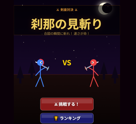『刹那の見斬り』は、画面に合図が出た瞬間に素早くボタンを押す、反射神経測定型のブラウザゲームです。